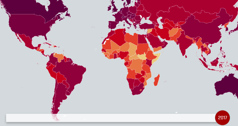 In 2017, The Netherlands remains at the top of the list of relative safety in the UL Safety Index. Australia moves up two positions to number three, right behind Norway, whose ranking is at number two as it was in 2016. Sweden remains at number four, and Canada moves from seventh to number five. At the bottom of the scale, Sub-Saharan Africa continues to have significant challenges, holding all five of the positions with the lowest level of relative safety, as measured by the UL Safety Index. Somalia replaced South Sudan at the bottom of the list, although South Sudan rose only one position. The remaining countries in the bottom five are Guinea-Bissau, The Central African Republic and Djibouti.